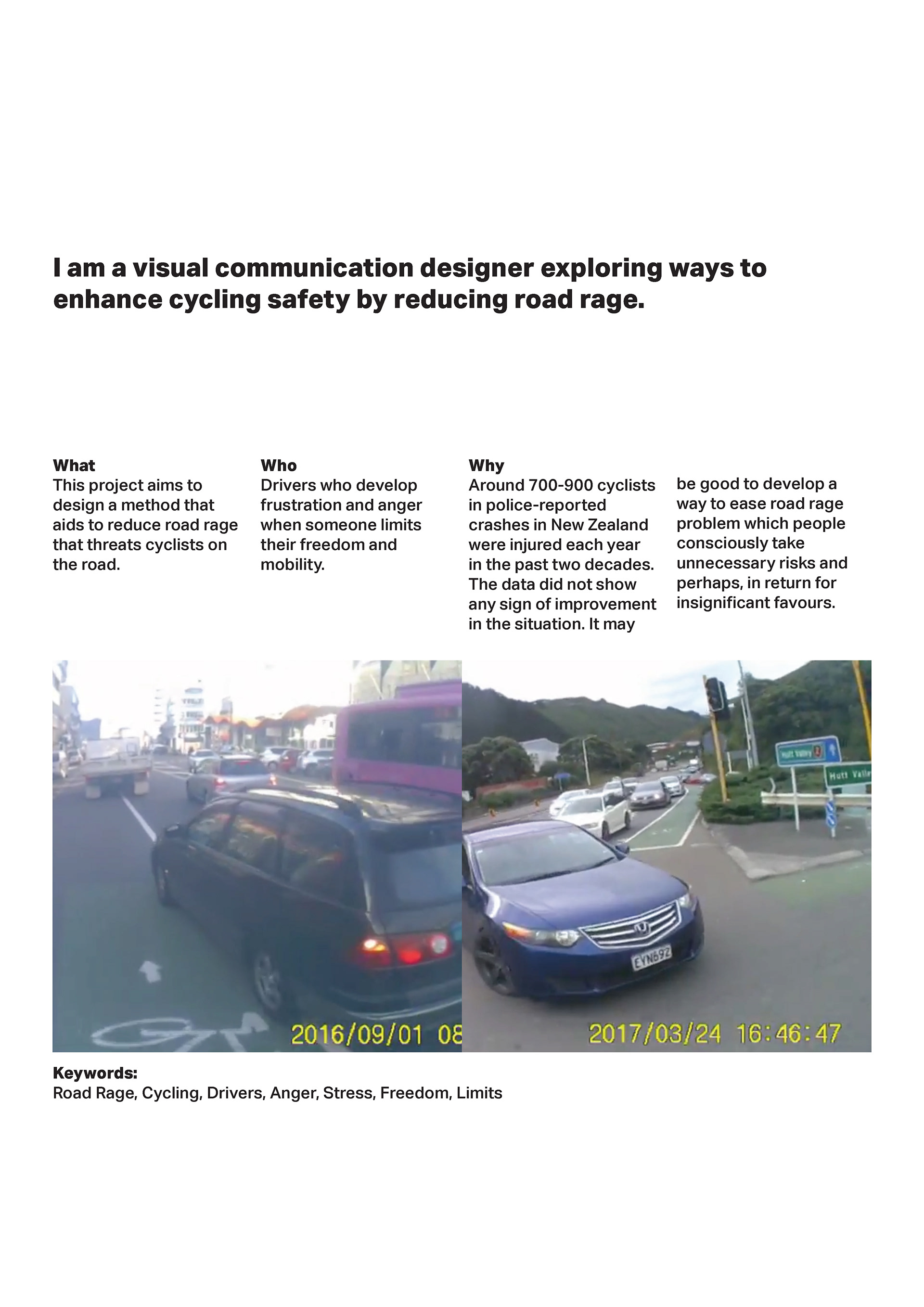 Pedal is the research project that I did for my Postgraduate Diploma in Design. I am exploring how visual communication design can promote mutual respect in road sharing by raising the awareness of cycling safety techniques and helping drivers to feel empathy towards the challenges cyclists face.
